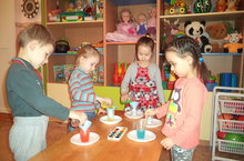 Игры с водой вызывают особый восторг у воспитанников второй младшей группы (воспитатели Беспалова С.А., Друзь А.С.). Поэтому один день был посвящен опытам и экспериментам с водой. Это очень увлекательная и познавательная деятельность для детей. В результате эксперимента ребята узнали, что воду можно окрасить в разные цвета.