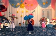 Ребятки из «Росинки» знают не понаслышке, что такое зонтик и какой он полезный. Педагоги Краснова Н.В., Ямашева Г.Г. и музыкальный руководитель Ганфаритова Х.А. подготовили яркий музыкальный праздник. Малыши вместе со сказочными персонажами Зонтиком и Сапожком читали стихи, пели песенки, играли и танцевали с осенними листочками и зонтиками. Сказочные персонажи приготовили сладкий сюрприз: карамельную карусель. Праздник получился весёлый и красочный.