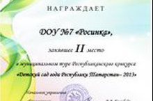 Детский сад №7 "Росинка" занял 2 почётное место в муниципальном туре Республиканского конкурса "Детский сад года Республики Татарстан - 2013"