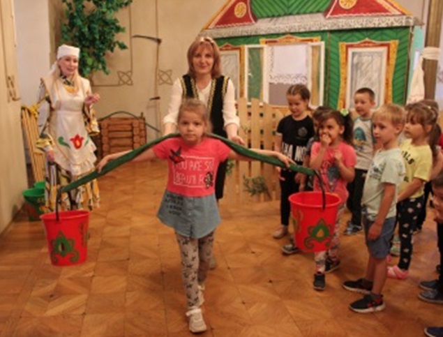 Опубликовано: 20.05.2021В ходе посещения интерактивной площадки «Татар өе» в Татарском культурном центре воспитанники старшей группы «Сказка» познакомились с жизнью и бытом татарской деревни начала прошлого века. Узнали, как называются предметы обихода на русском и татарском языке; послушали «Колыбельную» на татарском языке, вместе исполнили песни на русском и татарском языке.