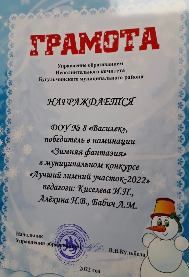 Подведены итоги лучших зимних участков по муниципальному Бугульминскому району и городу Бугульме среди дошкольных образовательных организаций! Поздравляем победителей!!!