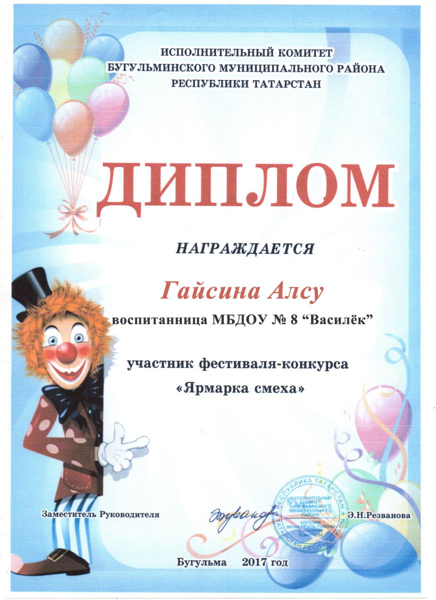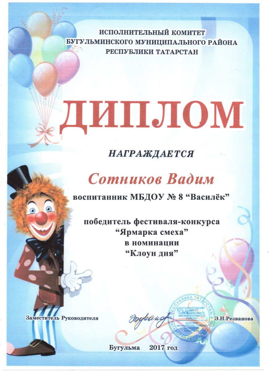 Поздравляем Сотникова Вадима и Гайсину Алсу (гр. «Сказка», воспитатель Стучалова И.Н., музыкальный руководитель Харламова А.Л.) за представление нашего детского сада на «Ярмарке смеха»!