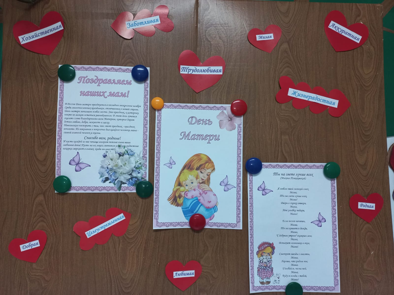 Всю неделю в каждой группе велись разговоры «по душам». Ребята участвовали в уроках доброты, читали стихи о маме, рисовали их портреты, придумывали сюрпризы, готовили открытки; советовали друг другу, как можно им помочь в повседневной жизни.