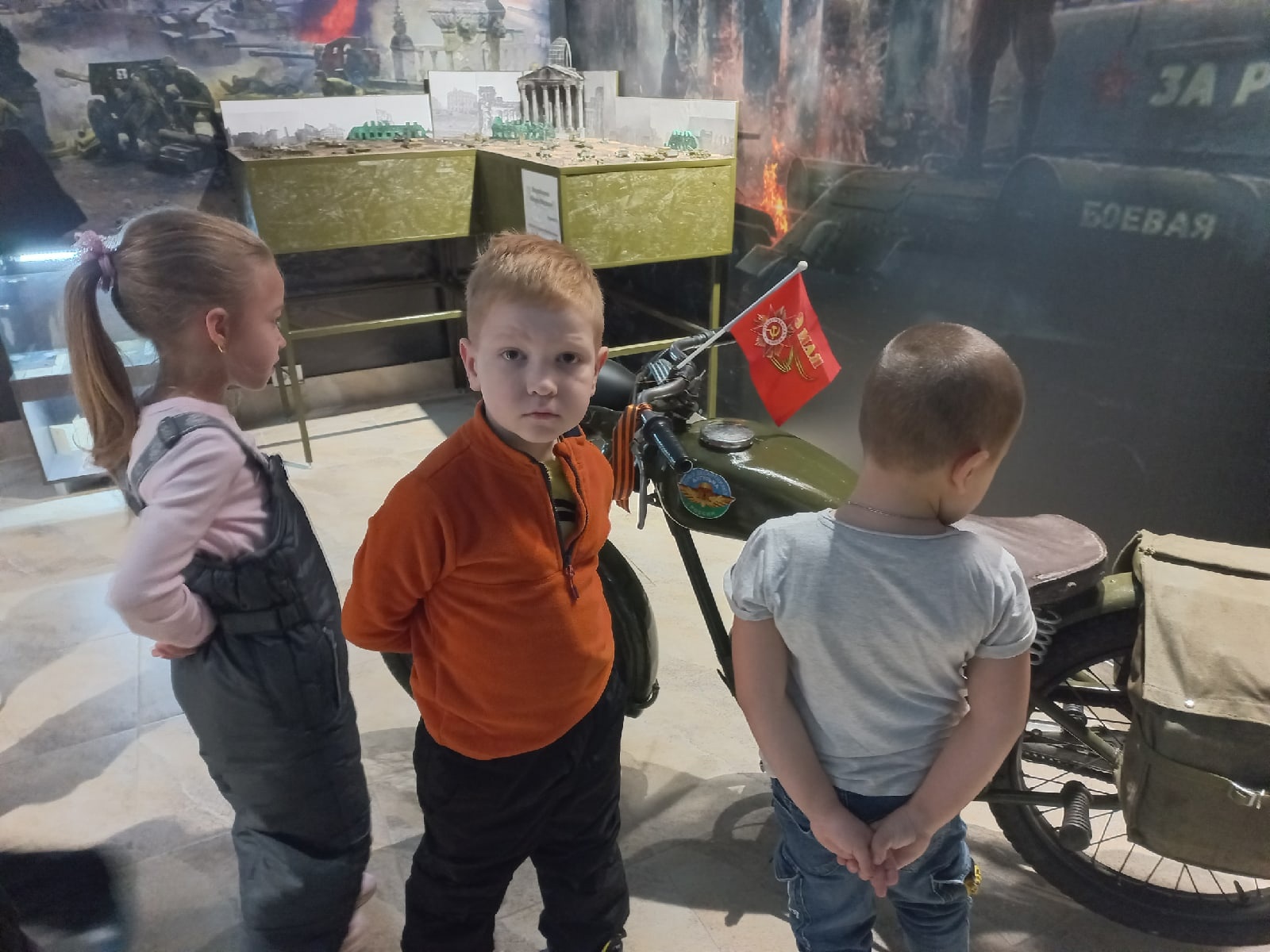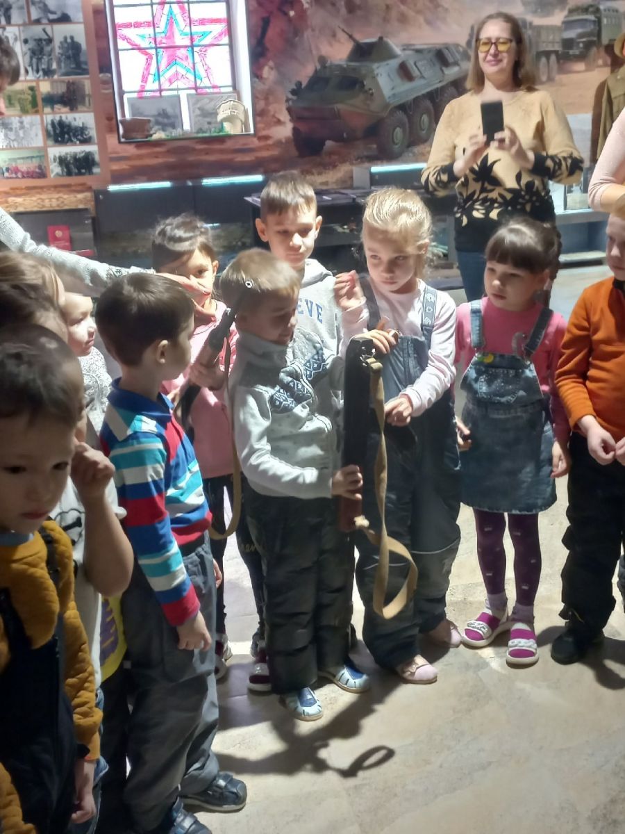 Опубликовано: 18.11.2022Ребята подготовительных к школе групп «Ромашка» и «Капельки» совершили экскурсию в музей «Боевой славы» который находится в нашем городе.