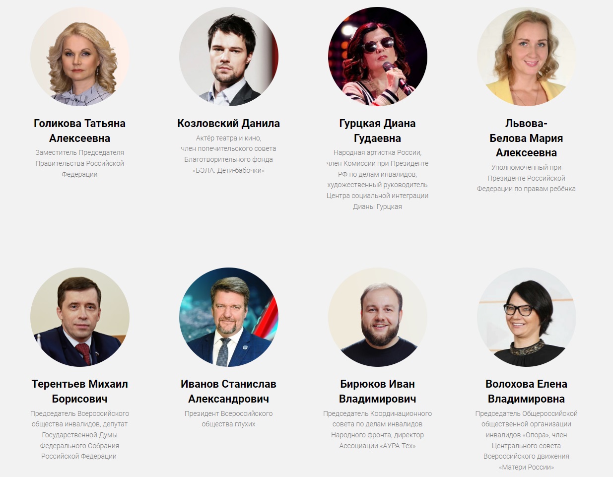 Спикерами Тотального теста «Доступная среда» выступают известные государственные деятели, лидеры общественного мнения, представители культуры и искусства.