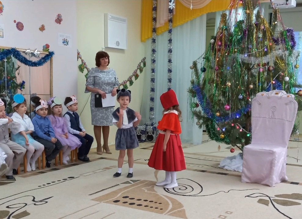Разноцветные, сверкающие гирлянды и ярко украшенная ёлочка принесли детям ощущение чуда. С самого начала представления сказочные герои увлекали детей в волшебный мир сказки. Дети окунулись в праздничную атмосферу приключений, поучаствовали в интересных конкурсах. С появлением Деда Мороза начался настоящий праздник с песнями и танцами, хороводами вокруг ёлки.