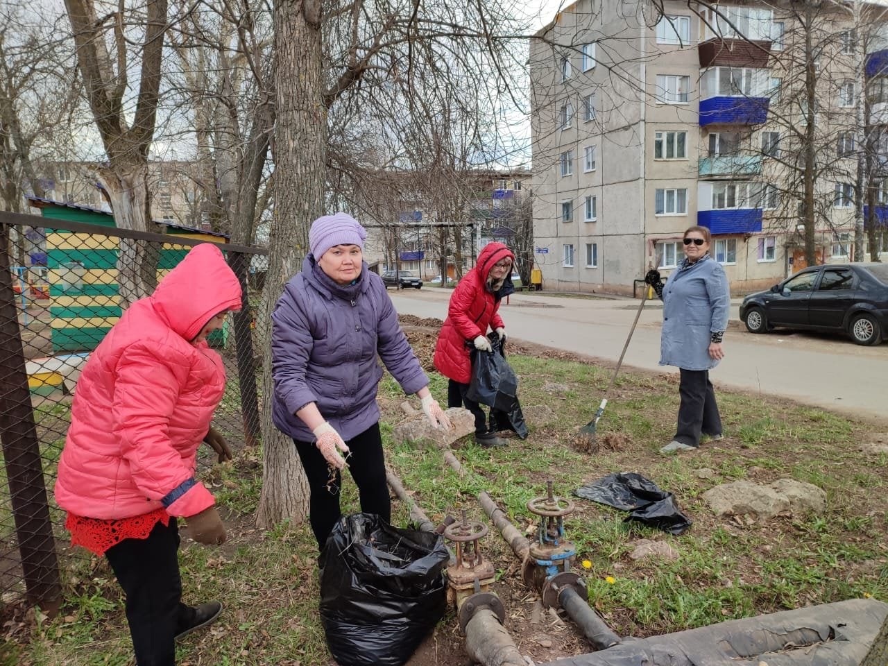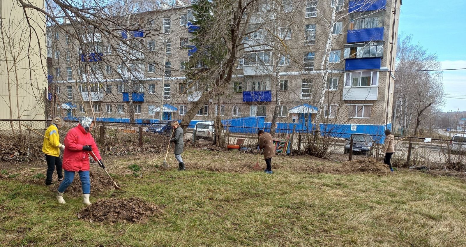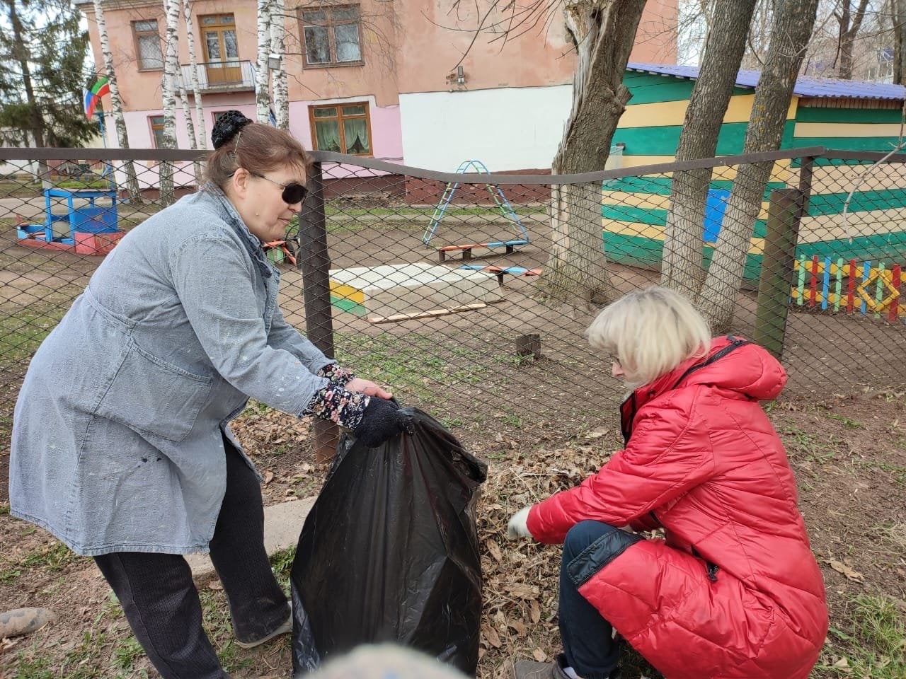 Вооружившись необходимым инвентарём, сотрудники детского сада дружно вышли на уборку территории. Все с удовольствием приводили в порядок территорию: подметали свои участки, собирали мусор; белили стволы деревьев, обкапывали их; сгребали листву и траву, приводили в порядок клумбы. Общими усилиями за несколько часов территория детского сада преобразилась: везде стало ещё чище и красивее.