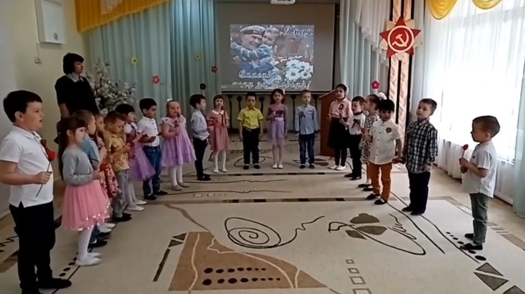 05.05.2023г. Наши ребята совместно с детьми подготовительной группы «Капельки» приняли участие в акции «Звезда Героя». Участники построились в форме «Звезды» и совместно с младшим воспитателем Шамсиевой Василёй Ахмедовной исполнили песню «День Победы». Акция «Звезда Героя» — это дань памяти всем тем, кто стойко выдержал все тяготы Великой Отечественной войны, проявил выдающийся героизм и мужество.