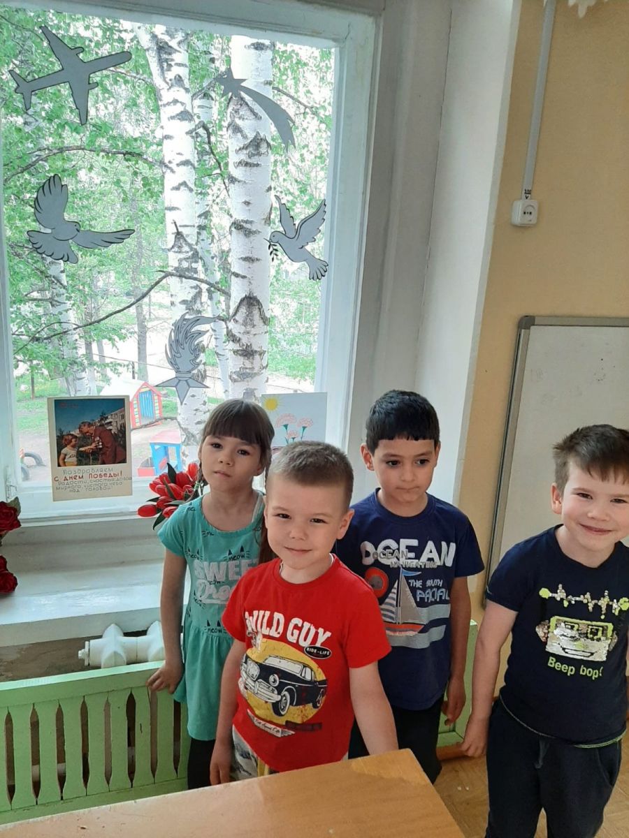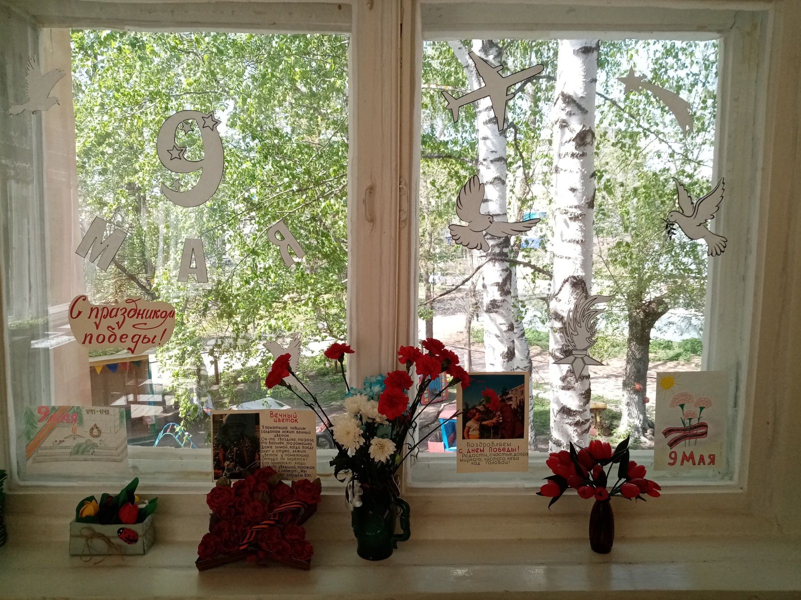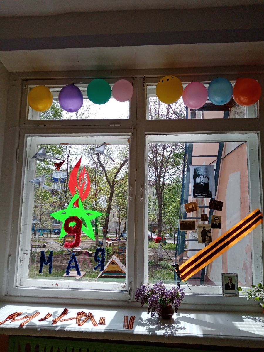 04.05.2023г. Годы уходят, но память о подвиге наших героев не меркнет. В канун праздника Дня Победы мы решили подержать Всемирную акцию «Окна победы» Это удивительная акция, которая сближает людей в великий для нас день. "Окна Победы" объединяют улицу, город и всю страну. «Весёлые Ребята» украсили окна своей группы узнаваемыми фигурами, поздравительными надписями, изображением вечного огня и салюта, а также и фотографиями. Тем самым мы смогли выразить, благодарность всем тем, кто подарил нам мирное небо.
