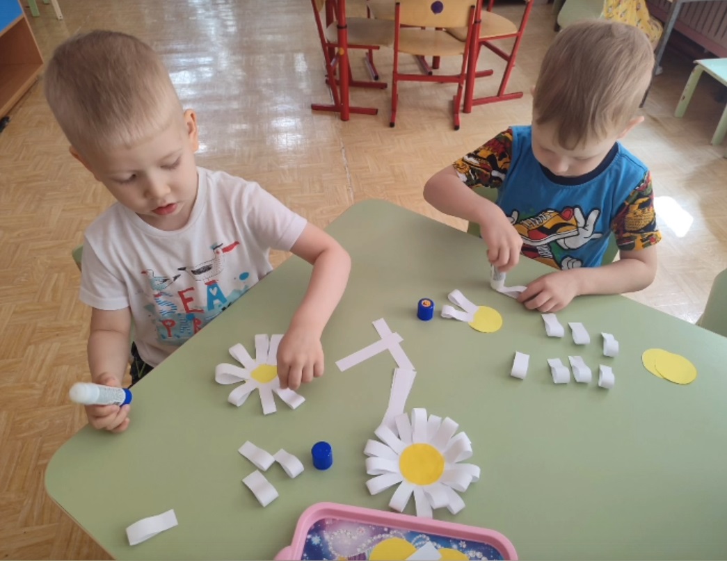 Наши ребята с любовью сделали символ праздника — ромашку.