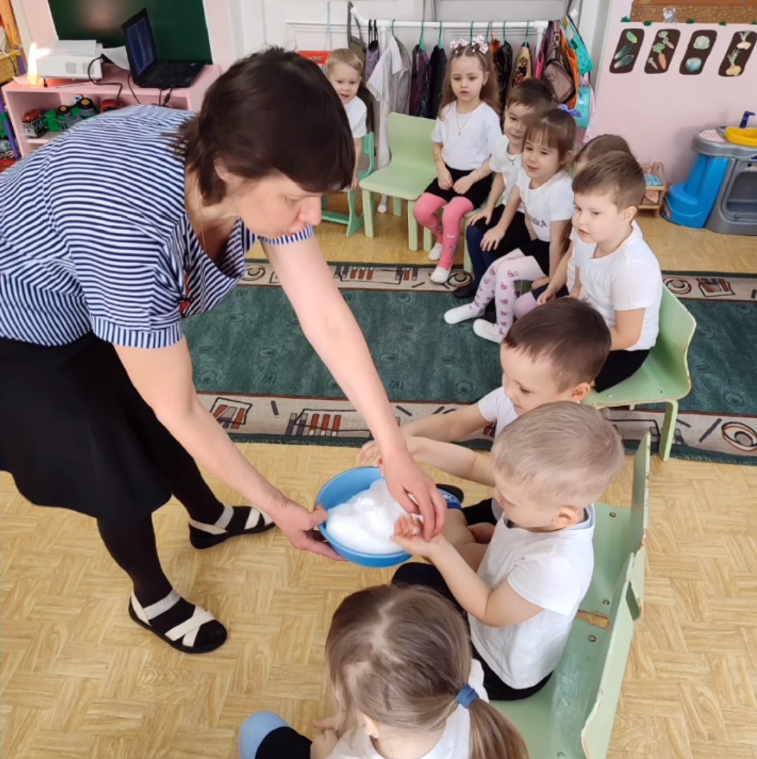 25.01.2024 г. На занятии ребята рассматривали зимние пейзажи, отгадывали загадки, закрепили признаки зимы, зимние месяцы, играли в игры "Зима — хорошо или плохо?", "Зимние слова", "Снежинки и ветер"; рассмотрели снег, а затем снеговую воду, сделали вывод: снег холодный, грязный; сами создали из частей картину "Зима".
