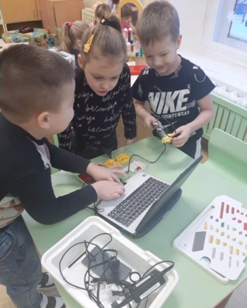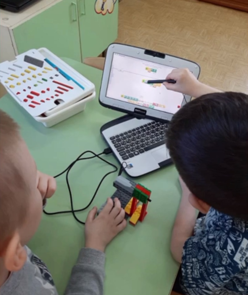 На занятиях с детьми используются конструкторы нового поколения: LEGO WeDo 2.0, а также ноутбуки. За это время ребята познакомились с элементами конструктора, наименованием деталей, терминов, блоками программирования. Под руководством педагога выполнили несколько практических работ.