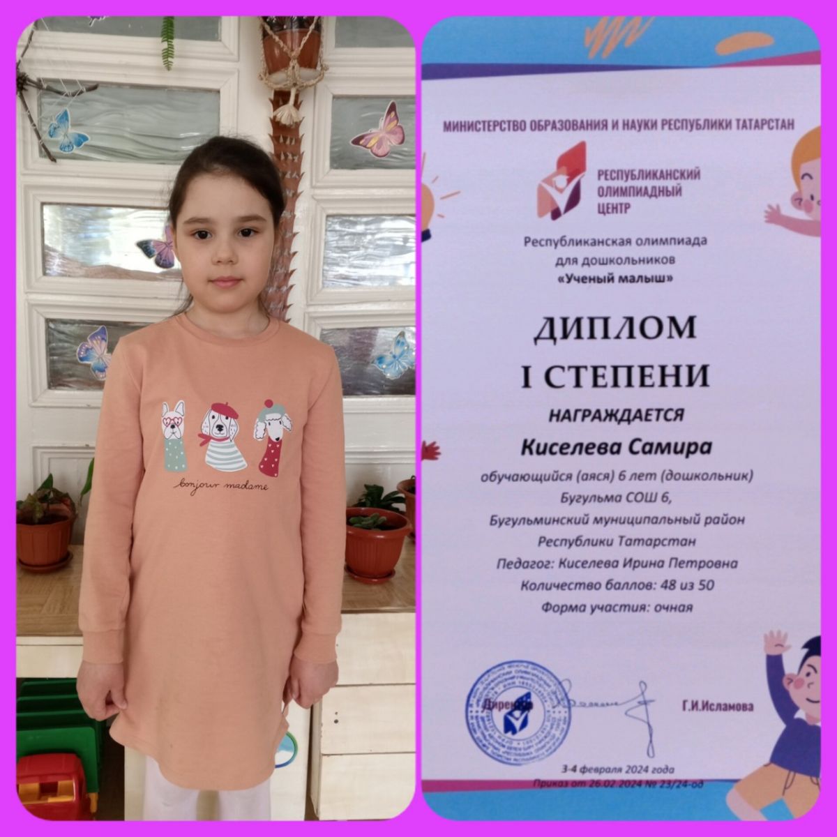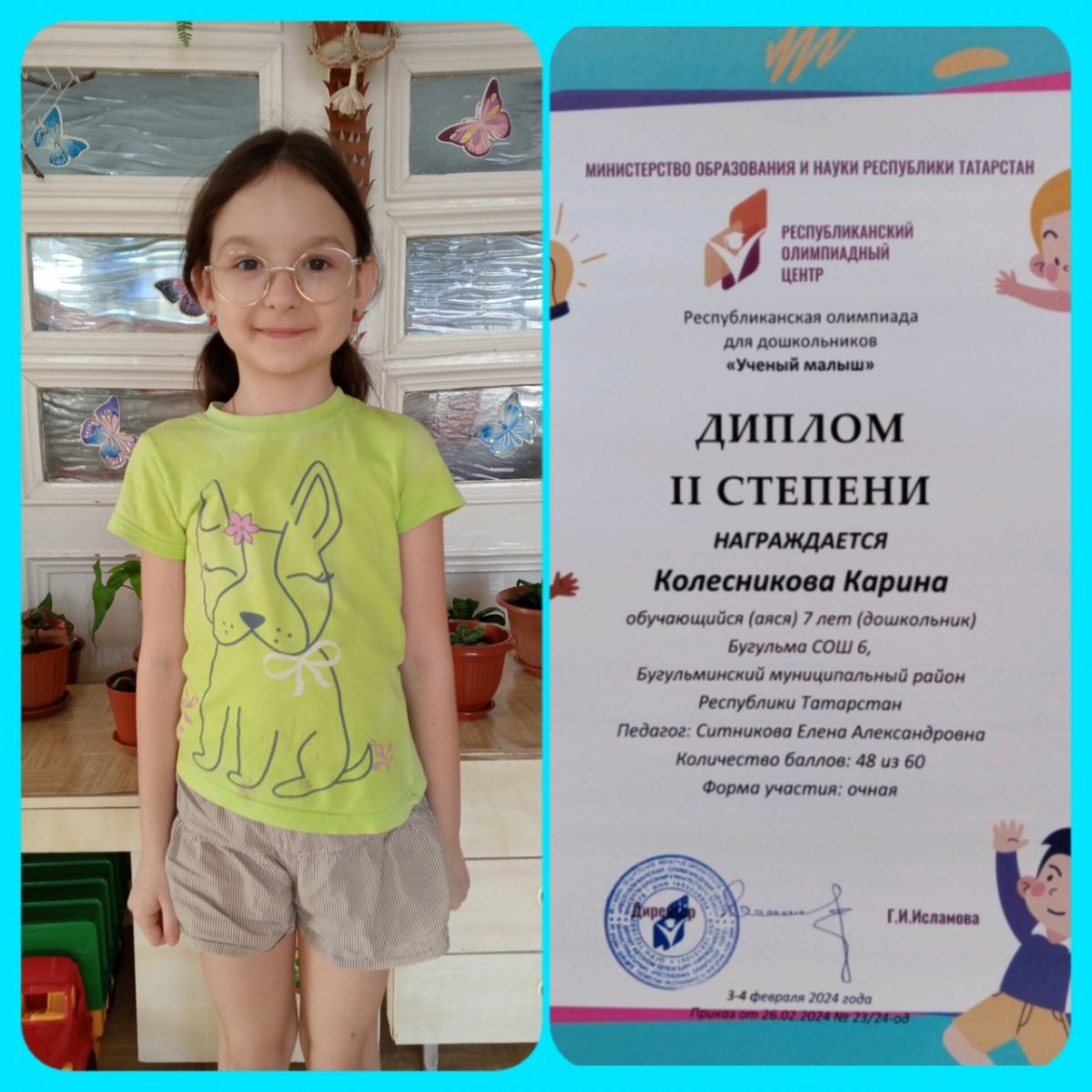 Поздравляем нашу Колесникову Карину с участием в городской муниципальной олимпиаде по татарскому языку! Пусть ни дня не проходит без увлечений и занятных дел, пусть ни одно твоё старание не пропадает даром! Желаем успехов и ещё множества побед!