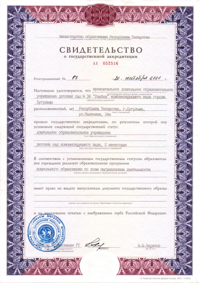 Муниципальное бюджетное дошкольное образовательное учреждение детский сад комбинированного вида № 36 "Улыбка" Бугульминского муниципального района Республики Татарстан / Татарстан Республикасы Бөгелмә муниципаль районы мәктәпкәчә тәрбия һәм белем бирү муниципаль бюджет учрееждениясе "Улыбка" 36 нчы катнаш төрендәге балалар бакчасы.