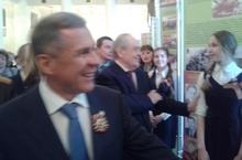 В здании Театра оперы и балета им. М.Джалиля для делегатов была представлена выставка баннеров «Герои Победы – наши прадеды и деды», в рамках Республиканской историко-краеведческой акции «Мы в летописи Великой Отечественной…», посвященной 70-летию Победы в Великой Отечественной войне. От Бугульминского района перед Президентом РТ, М.Ш.Шаймиевым и Министром образования и науки РТ Э.Фаттаховым баннер представляли воспитанница МБОУ ДОД Дворца школьников Кожанова Екатерина и руководители Арзамасова А.В. и Закирова В.Н.