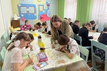 В преддверии великого праздника победы руководитель студии "Тайна моего я" Булгакова С. М. провела занятие с особенными детьми "Цветок Победы", направленное на развитие мелкой моторики, снятие мышечного напряжения и сплочение группы. Занятие посетила заместитель руководителя исполнительного комитета Бугульминского муниципального района Плеханова Ольга Анатольевна.