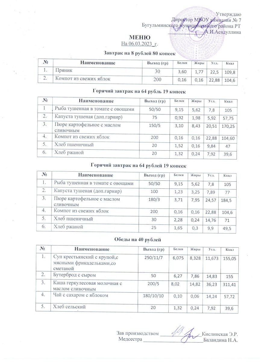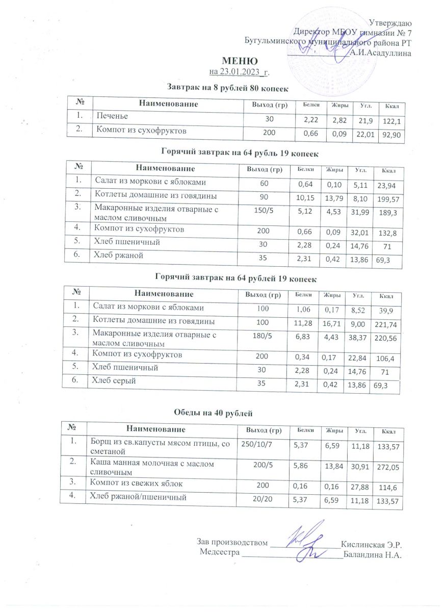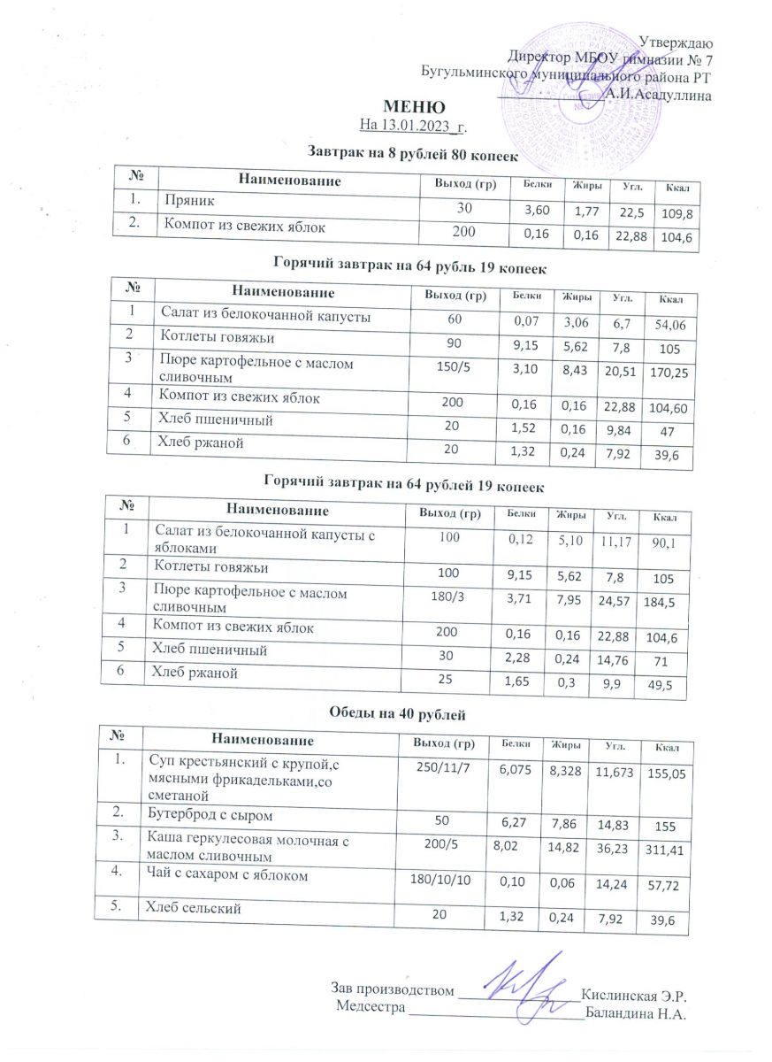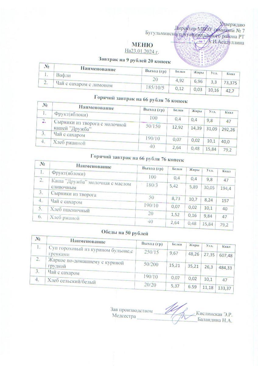Меню на 2023 года ( 2 недели)