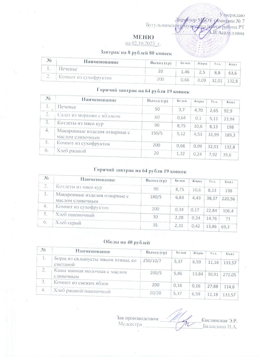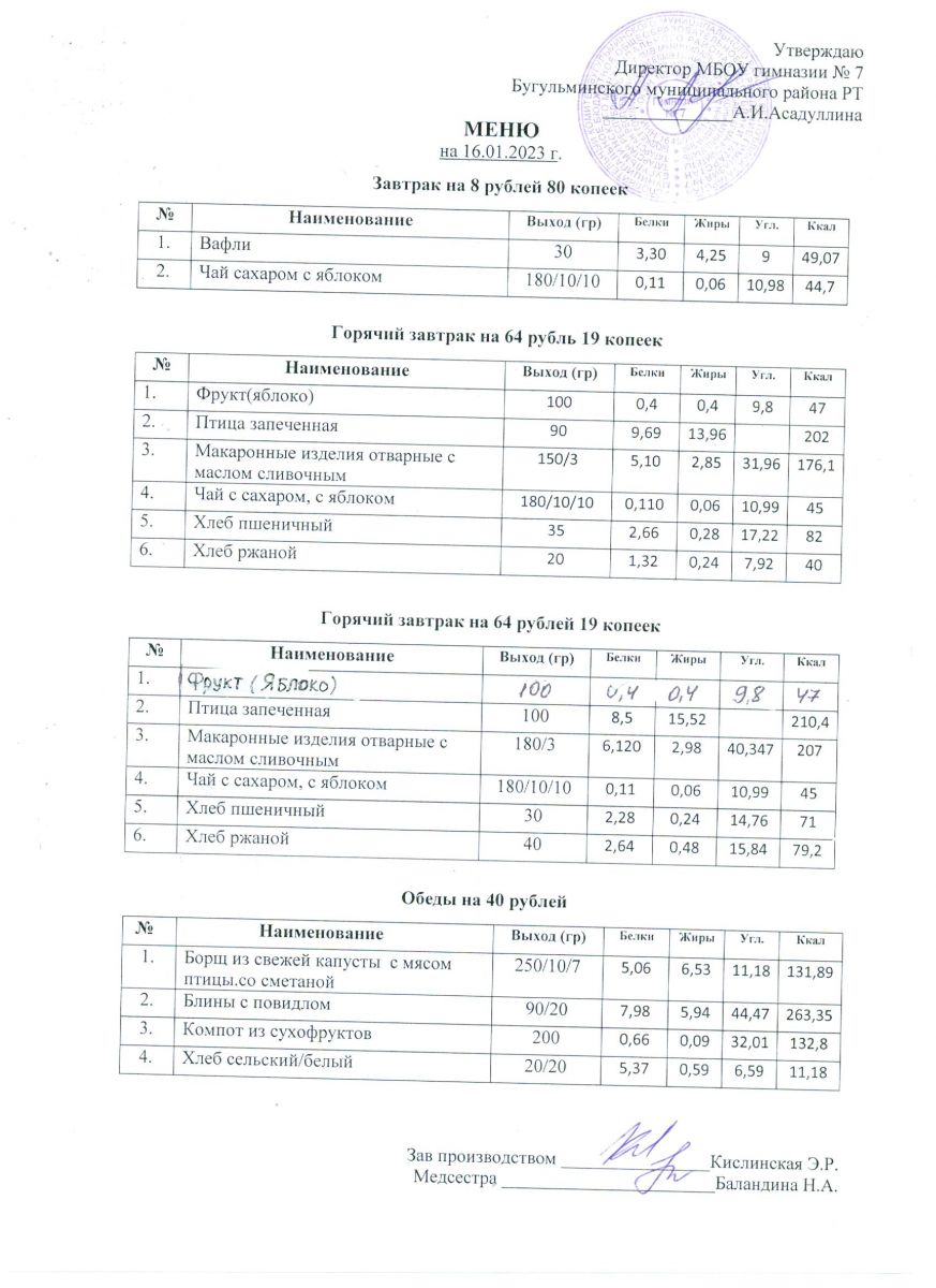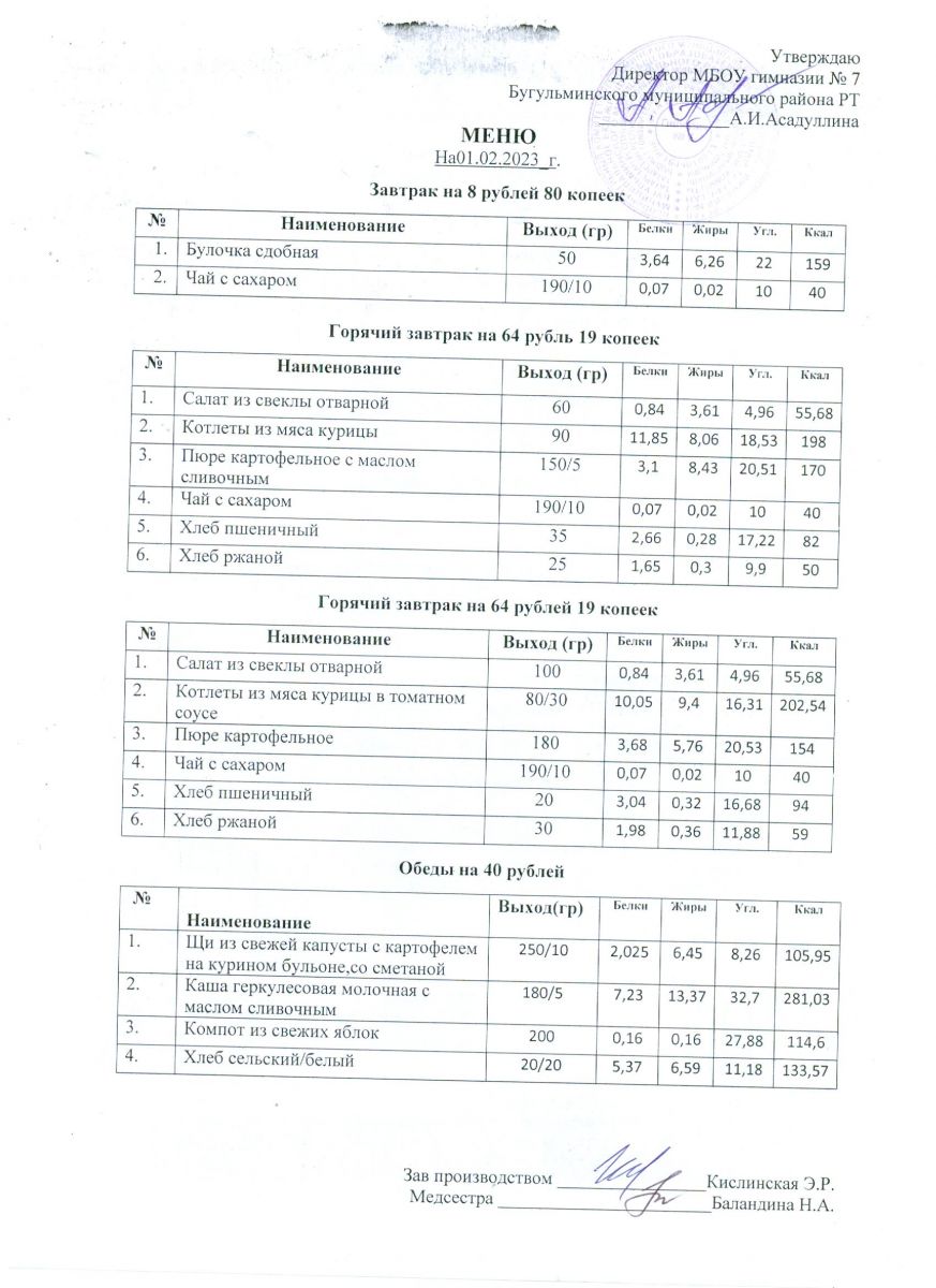 Меню на 2023 года ( 2 недели)