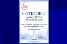 В марте 2014 года ученик 11 класса Марат Исмагилов стал призером финального этапа Всероссийской олимпиады школьников по математике «Покори Воробьевы горы», организованной Московским государственным университетом им. М.В. Ломоносова и редакцией газеты «Московский комсомолец». Поздравляем Марата и желаем ему новых достижений и побед!