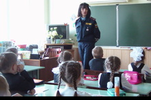 Параллельно была проведена тренировочная эвакуация гимназистов по вводной команде «Пожар». Все ученики быстро и дисциплинированно покинули здание гимназии.