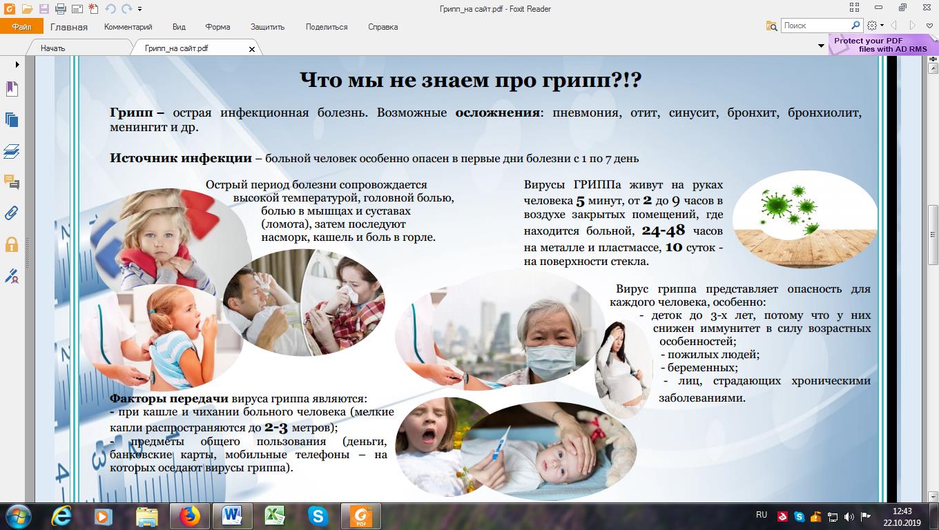 В соответствии с письмом Управления Роспотребнадзора по Республике Татарстан от 17.10.2019 № 07/34924 «О мероприятиях по профилактике гриппа» в связи с началом сезона заболеваемости гриппом и ОРВИ просим обратить внимание на полезные ссылки