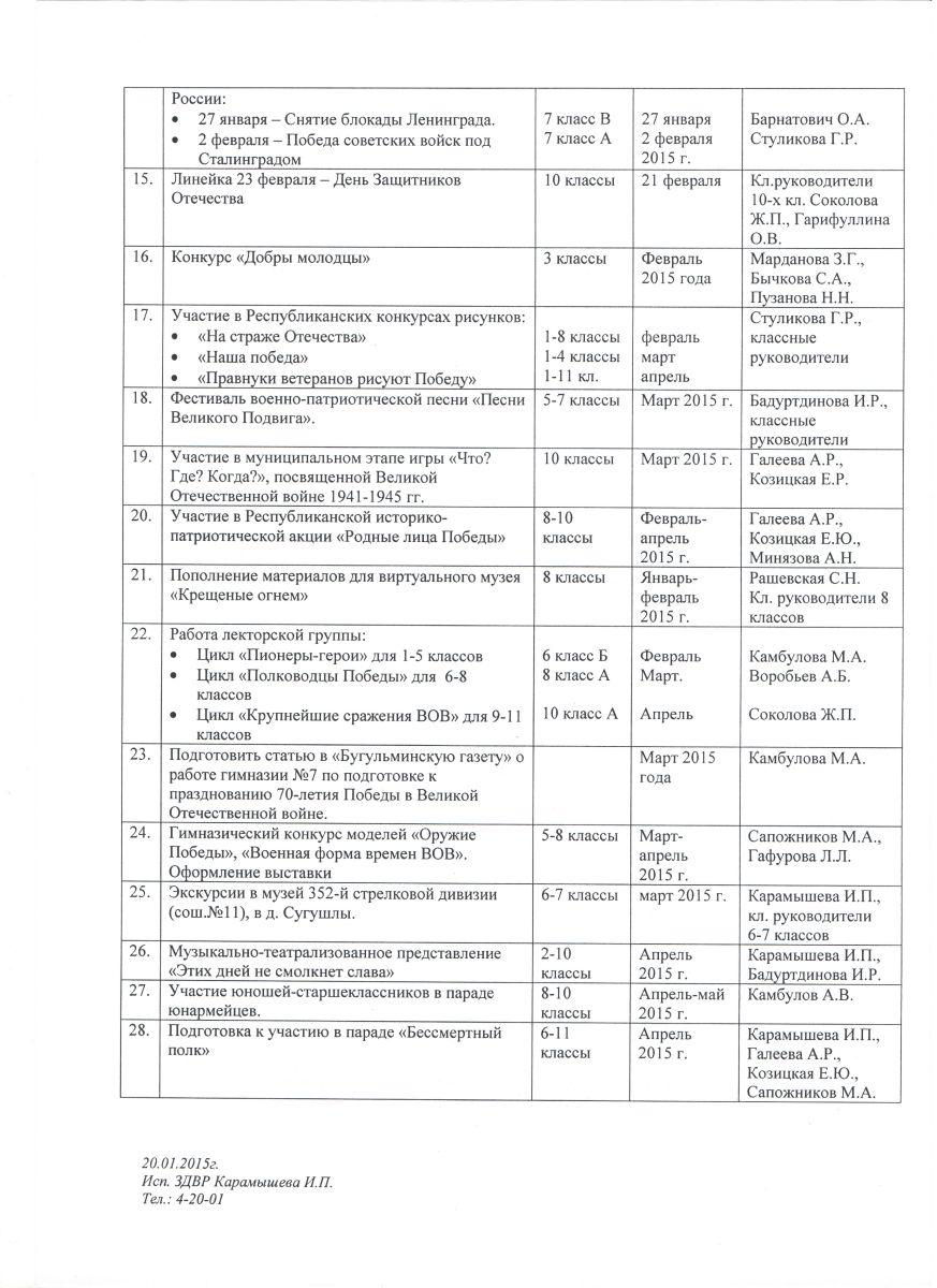 План работы гимназии по подготовке к празднованию 70-летия победы с2