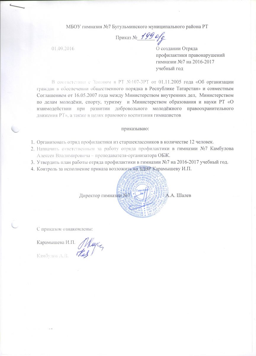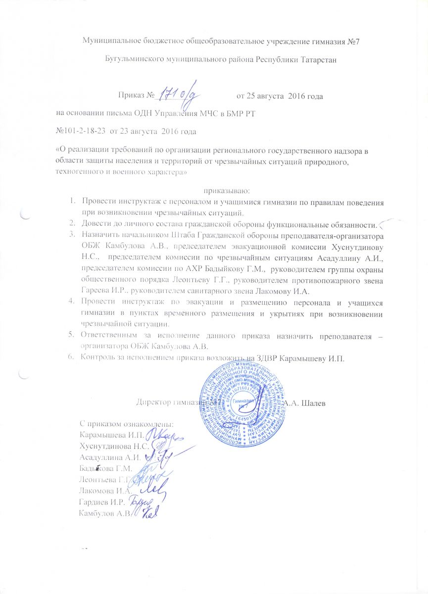 Приказ по обеспечению антитеррористической защищенности гимназии № 7