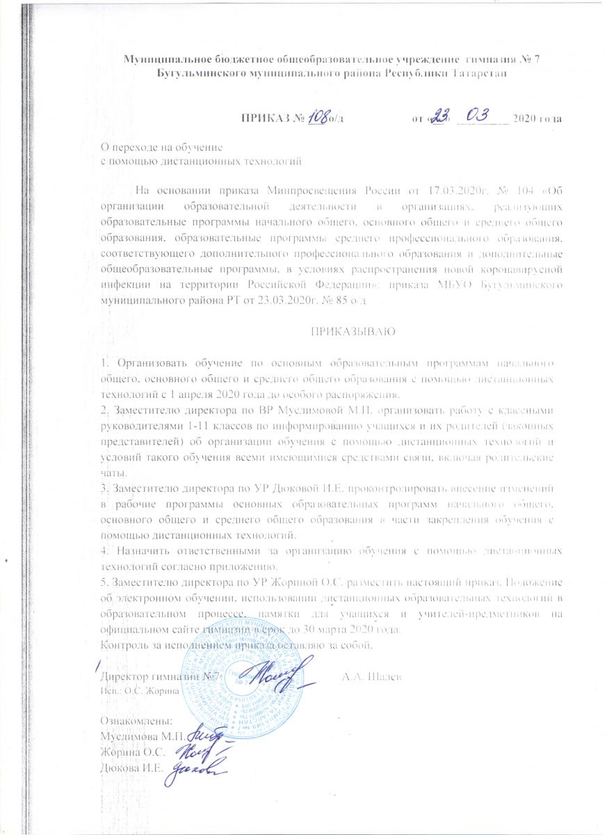 Приказ о переходе на обучение с помощью дистанционных технологий с 1 апреля до особого распоряжения