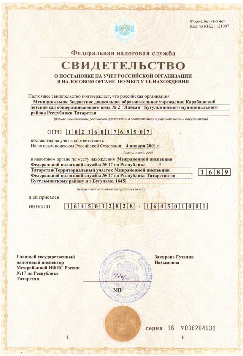 свидетельство о внесении в Единый государственный реестр юридического лица