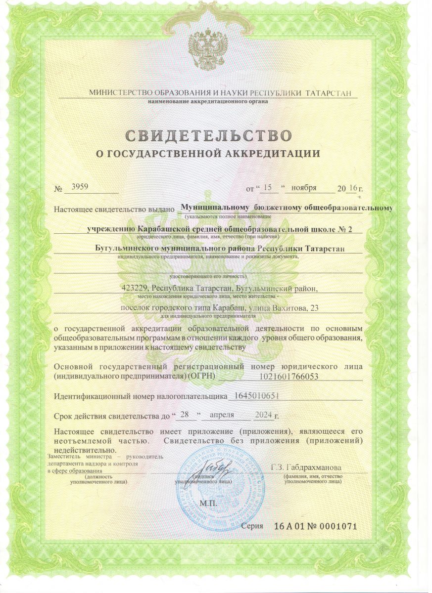 Муниципальное бюджетное общеобразовательное учреждение Карабашская средняя общеобразовательная школа №2 Бугульминского муниципального района РТ/Татарстан Республикасы Бөгелмә муниципаль районы муниципаль бюджет гомуми белем бирү учреждениесе Карабаш 2 нче урта гомуми белем бирү мәктәбе