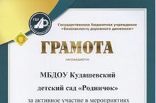 Наш детский сад получил грамоту за активное участие в мероприятиях по предупреждению детского дорожно-транспортного травматизма.