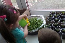 У воспитанников младшей группы свой питомник- огород на окне. Скоро на клумбах зацветут цветы, выращенные своими руками