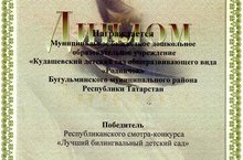 Наш детский сад стал одним из победителей Республкианского смотра-конкурса "Лучший билингвальный детский сад". Мы награждены дипломом и сертификатом на 1 000 000 рублей. Выражаем огромную благоданость тем кто нам помогал, и кто за нас болел!!