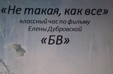 В рамках реализации Всероссийского проекта «Киноуроки в школах России», направленного на формирование и развитие системы воспитания подрастающего поколения, прошел просмотр фильма «БВ» («Белая ворона») учащимися и родителями 5-9 классов. Темой фильма является прощение, где раскрываются нравственные понятия. После просмотра фильма прошло обсуждение фильма и героев. Дети ответили на вопросы: 1. Трудно ли дружить с «белой вороной»? 2. Каково это быть «не такой как все»? 3. Почему вы бы хотели или не хотели дружить с Дашей? Мнения учащихся были разные, но пришли к выводу, что решить проблемы легче всего вместе с друзьями, а не в одиночестве.