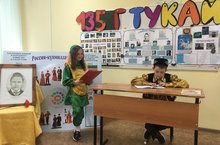 26 апреля – день рождения великого татарского поэта Г.Тукая. В этом году ему исполняется 135 лет. В связи с этой знаменательной датой в МБОУ Кудашевской ООШ провели юбилейный вечер поэта под руководством учителя татарского языка Янгировой Л.Ф. Учитель красиво украсила кабинет портретом Г.Тукая, плакатами о поэте, эмблемой Года родных языков, подобрала соответствующее музыкальное оформление мероприятия. Учащиеся повторили биографию Г.Тукая, вспомнили его бессмертные произведения. Каждый класс подготовил инсценировку стихотворений поэта. Вечер закончился всеобщим исполнением легендарной песни «Туган тел». / 26 апрель - бөек татар шагыйре Г.Тукайның туган көне. Быел аңа 135 яшь тула. Шул уңайдан Кодаш төп гомуми белем бирү мәктәбендә татар теле укытучысы Янгирова Л.Ф. җитәкчелегендә шагыйрьнең юбилей кичәсе үткәрелде. Укытучы кабинетны Г. Тукай портреты, шагыйрь турында плакатлар, туган телләр елы эмблемасы белән бизәде, чараның музыкаль бизәлешен тапты. Укучылар Г.Тукайның биографиясен кабатладылар, аның үлемсез әсәрләрен искә төшерделәр. Һәр сыйныф шагыйрьнең шигырьләрен сәхнәләштерде. Кичә легендар «Туган тел» җыры белән тәмамланды.