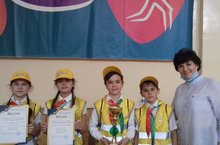 Команда ЮИД Кудашевской ООШ участвовала на городском конкурсе «Безопасное колесо», который прошел в СОШ № 13 города Бугульмы. Участники должны были пройти 5 станций на знание правил: «Основы безопасности жизнедеятельности», «Автогородок», «Знание медицины», «ПДД», «Фигурное вождение велосипеда» и дополнительный творческий этап выступления агитбригады. Жюри оценивала выступление участников на каждом конкурсе и после завершения всех конкурсов, посчитав очки команд, присуждали почетные места, вручали кубки и ценные призы. Команда Кудашевской ООШ была награждена Дипломом среди городских и сельских школ за лучший результат на творческом этапе, кубком и Дипломом II степени среди сельских команд./ Кодаш төп гомуми белем бирү мәктәбенең ЮИД командасы Бөгелмә шәһәренең 13 нче урта мәктәбендә узган «Куркынычсыз тәгәрмәч» исемле шәһәр бәйгесендә катнашты. Катнашучылар «Тормыш иминлеге нигезләре», «Автошәһәрчек», «Медицина белеме», «Юл хәрәкәте кагыйдәләре», «Велосипедны фигуралы йөртү» этапларын үтеп, өстәмә иҗади этап - агитбригада чыгышы күрсәтергә тиеш иделәр. Жюри һәр конкурста командаларның чыгышын бәяләде һәм барлык конкурслардан соң, очколарны санап, мактаулы урыннар бирделәр, кубоклар һәм кыйммәтле бүләкләр тапшырдылар. Кодаш төп гомуми белем бирү мәктәбе командасы шәһәр һәм авыл мәктәпләре арасында иҗади этапта “Иң яхшы нәтиҗә күрсәткән өчен” Диплом белән, авыл командалары арасында Кубок һәм II дәрәҗә Диплом белән бүләкләнде.