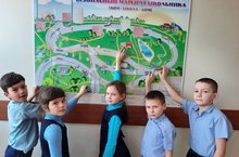 В рамках акции "Ребёнок главный пассажир" учащиеся 2 класса под руководством Зиганшиной З.М. закрепили представления о дорожных знаках. Во время игры "Угадай знак" все изученные знаки были расставлены на расстоянии друг от друга. Учитель зачитывал словесное описание того, что обозначает тот или иной знак. Дети подбегали к нужному знаку. Дети, правильно выбравшие знак, получали жетон. В конце игры подсчитали количество жетонов и определили победителя. Им оказалась Гарайханова А. / "Бала иң төп пассажир" акциясе рамкасында Зиганшина З.М. җитәкчелегендәге 2 нче сыйныф укучылары юл билгеләре турындагы белемнәрен ныгыттылар. "Билгене таны" уены вакытында өйрәнгән билгеләр бер-берсеннән төрле ераклыкка куелды. Укытучы юл билгеләре турында телдән сөйләде, укучылар тиешле билге янына йөгереп бардылар. Дөрес эшләүчеләргә жетон бирелде. Уен азагында жетоннар саналды, җиңүче билгеләнде: Гарайханова А.