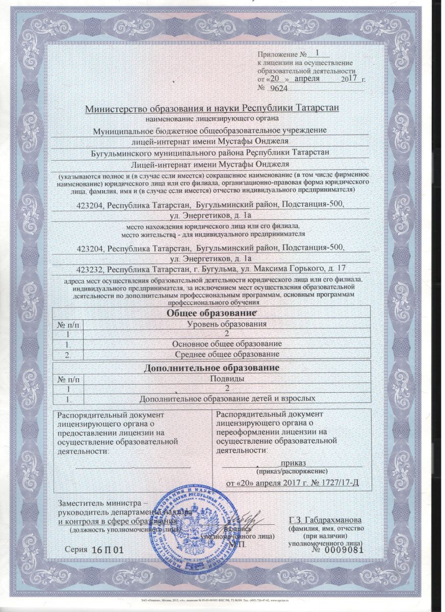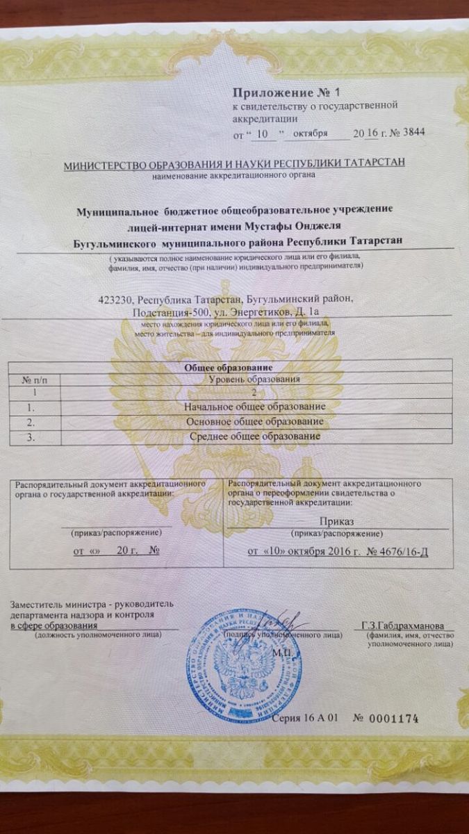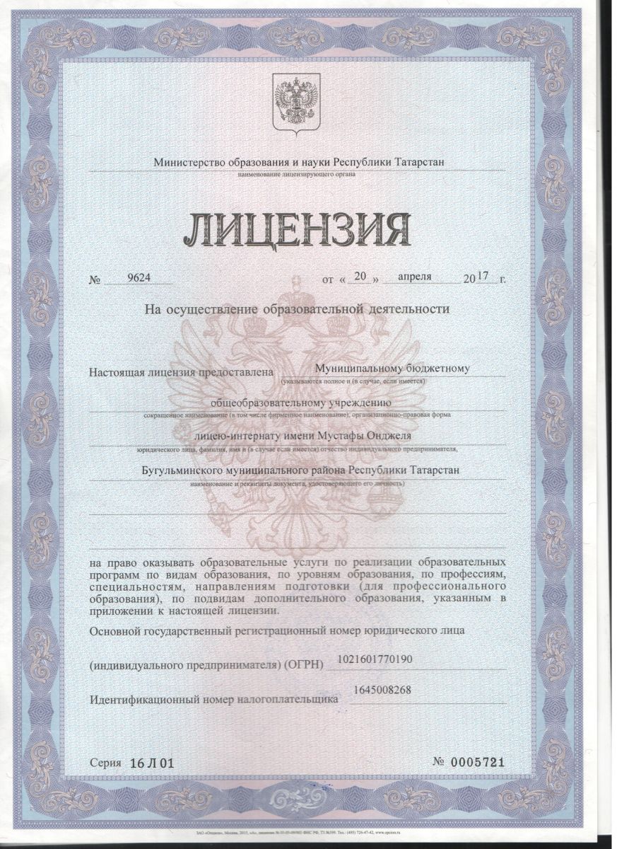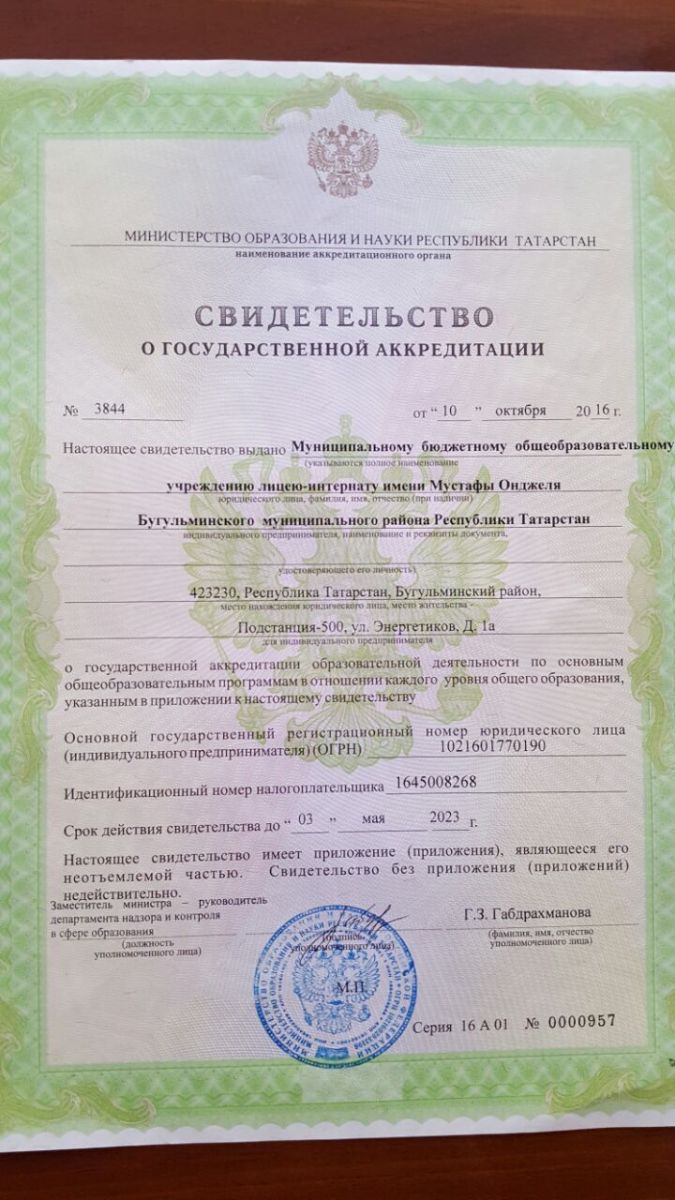 Муниципальное бюджетное общеобразовательное учреждение лицей-интернат имени Мустафы Онджеля Бугульминского муниципального района Республики Татарстан/Татарстан Җөмһүрияте Бөгелмә муниципаль районы муниципаль бюджет гомуми белем бирү учреждениесе Мостафа Өнҗәл исемендәге лицей-интернат