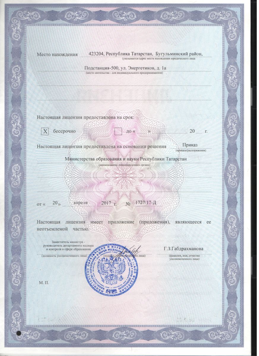 - Лицензия на осуществление образовательной деятельности (Обр.сторона) (Приложение №1)