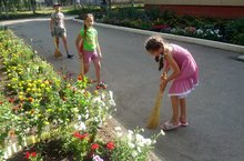 В лицее силами ребят проводится подготовка территории школы к новому учебному году.