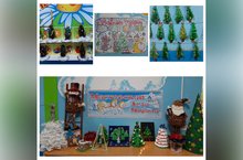 В результате и получились у детей группы "Солнечные зайчики" такие сказочные работы, приближающие нас к Новому году. Все они стали украшением новогоднего интерьера детского сада.