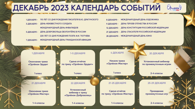 Календарь событий ДЕКАБРЬ