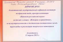 Призер НПК "Школьники - науке 21 века" 11.04.2013
