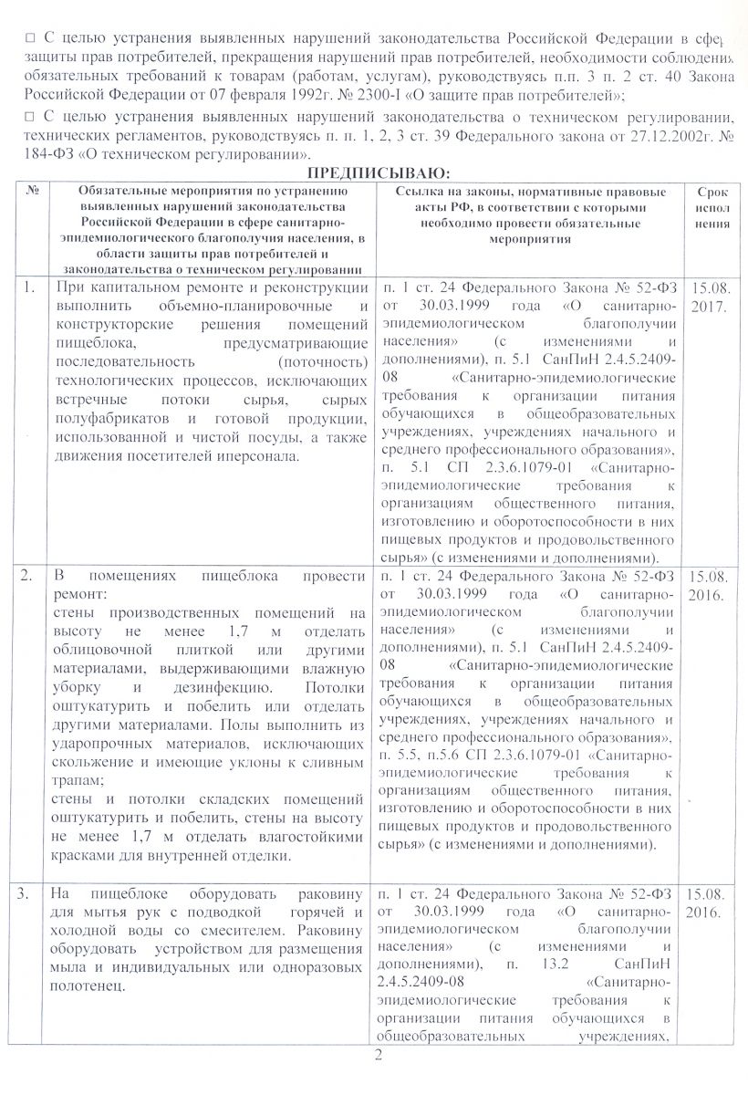 Предписание Роспотребнадзора с. 2