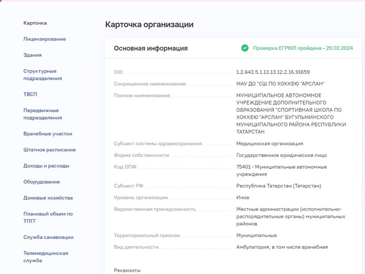 Карточка предприятия на сайте Федерального регистра медицинских организаций https://portalmr.egisz.rosminzdrav.ru/