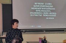 31 января в колледже состоялся открытый классный час, посвященный истории подпольной антифашистской комсомольской организации «Молодая Гвардия». Преподаватель истории Корнилова Т.В. рассказала студентам о создании «Молодой Гвардии». Организация была создана вскоре после начала оккупации города Краснодона войсками нацистской Германии, начавшейся 20 июля 1942 года. «Молодая гвардия» насчитывала семьдесят одного человека: сорок семь юношей и двадцать четыре девушки. Самому младшему было четырнадцать лет, а пятидесяти пяти из них так и не исполнилось девятнадцати, так как они погибли. В составе организации были русские, украинцы (в том числе казаки), армяне, белорусы, евреи, азербайджанец и молдаванин. После лекции студенты посмотрели исторический художественный фильм «Молодая Гвардия».