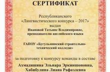 12 декабря 2017 года в г. Казани в соответствии с планом работы Министерства образования и науки Республики Татарстан, ФГБОУ ВО «Казанский национальный исследовательский технологический университет» состоялся Республиканский студенческий "Лингвистический конкурс-2017".