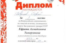 Всероссийские соревнования по тяжелой атлетике среди мужчин и женщин, посвященные памяти заслуженного тренера СССР Тимерзянова Е.А 30.04.2019