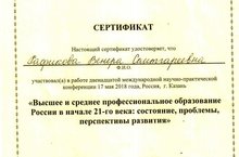 НПК «Высшее и среднее профессиональное образование России в начале 21-го века: состояние, проблемы, перспективы развития» 17.05.2018