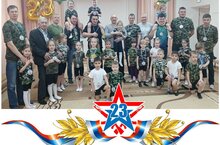 Праздник в группах "Звёздочки", "Знайки", "Фиксики" и "Смайлики" прошел в форме спортивного досуга . Воспитанники рассказывали стихи, отгадывали загадки, вместе с папами соревновались и играли в подвижные игры.
